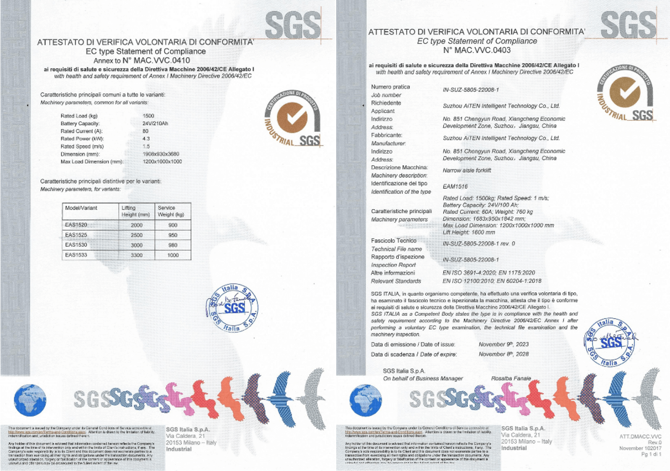3. CE 标志(欧盟): 确保符合机械指令,强调对繁忙仓库等动态环境的风险评估,在这些环境中,叉车与行人和手动设备相互作用。为满足欧洲市场的法规要求,米兰体育产品经过严格审核,为包括 MP10AM1516AE15、AS15 和其他产品在内的 AGV 产品获得了欧盟 CE 证书。